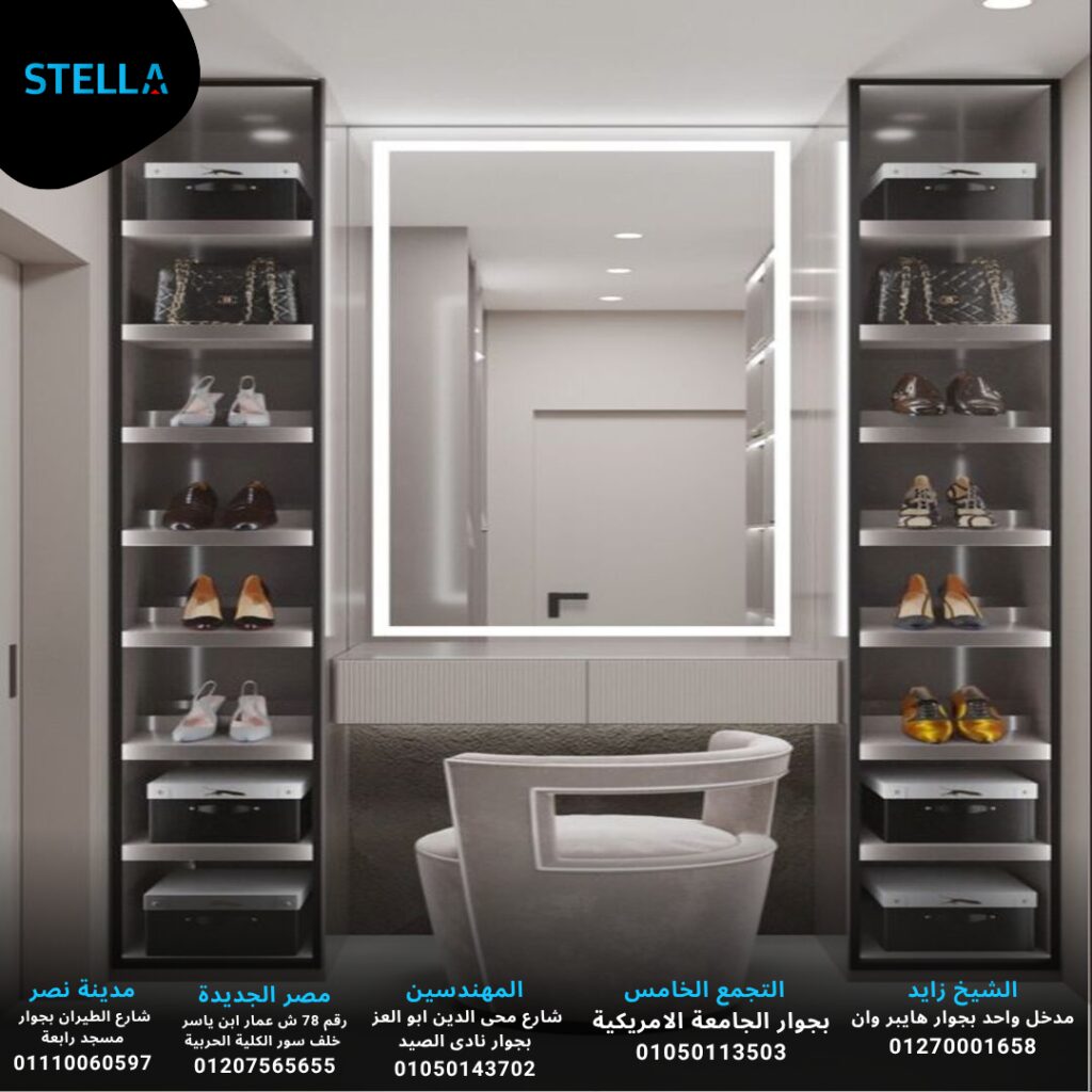 الخشب الطبيعي دايمًا اختيار فاخر اكتشف مع ستيلا أحدث موديلات دريسنج روم خشبي، بتصميمات تجمع بين الدفء والجمال وجودة التنفيذ
